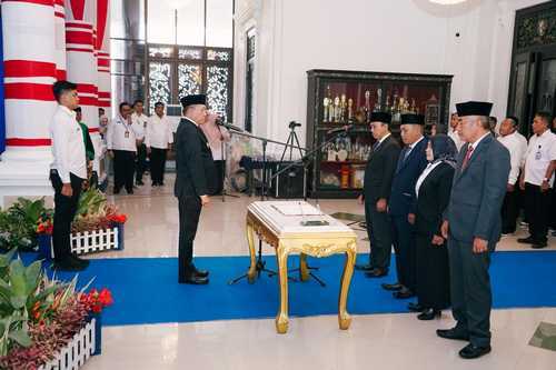 Bupati Sampang, H Slamet Junaidi melantik Dewan Pengawas dan Direktur Perumda Air Minum Trunojoyo, serta mengukuhkan Direktur Utama dan Direktur Operasional PT Geliat Sampang Mandiri (Perseroda) di Pendapa Trunojoyo.