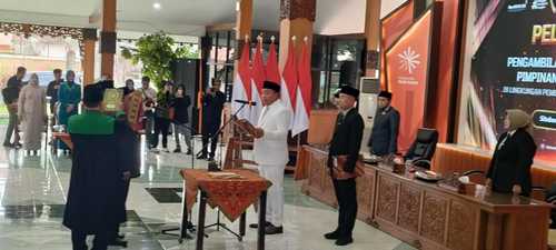 Lalu Samsuri dari Kepala BKPSDM digeser menjadi Asisten III Setdakab. Disisi lain, tiga pejabat bernama Puguh Wardoyo, Rikwan Sugiantoro dan Quratul Aini, dilantik menjadi Staf Ahli Bupati. (awi.gat)