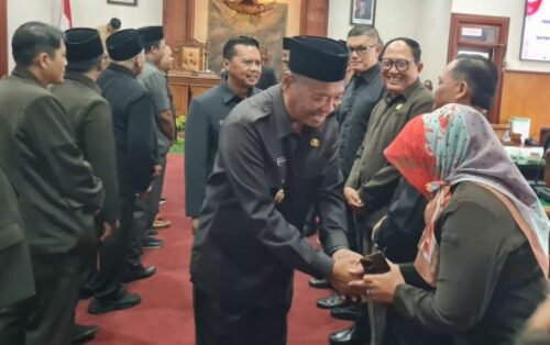 Bupati Gatut Sunu bersalaman dengan anggota dewan usai rapat paripurna DPRD Tulungagung, Senin (22/9).