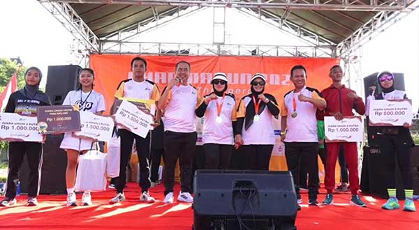 Setelah masuk finihs Halaman Ronggo Djumeno Caruban, suasana semakin meriah dengan hiburan DJ dan dilanjut penyerahan hadiah oleh Bupati Madiun dan Wabup Madiun serta foto bersama. [dar.wwn]