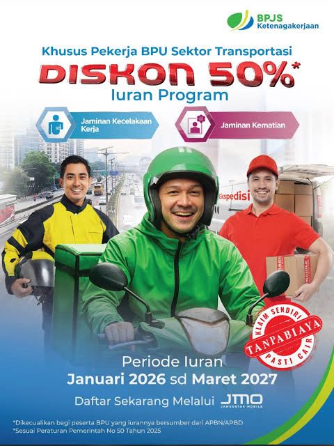 Pemerintah resmi memotong iuran JKK dan JKM BPJS Ketenagakerjaan sebesar 50 persen bagi pekerja mandiri (BPU) mulai April hingga Desember 2026.