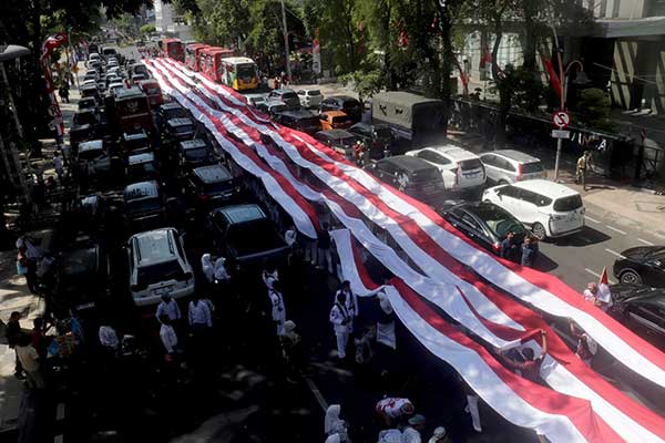 “Bentangan kain ini melibatkan 12 SMA dan SMK di Surabaya, baik murid maupun guru. Mereka bersatu untuk mengibarkan semangat kebangsaan melalui pembentangan kain merah putih raksasa,” ujar Aries.