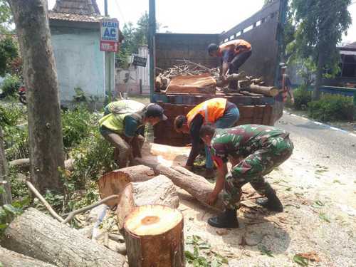 Menanggapi hal itu, berbagai unsur bergerak cepat melakukan pemotongan dan perantingan dahan pohon. Kegiatan yang berlangsung sejak pagi hingga sore tersebut melibatkan TNI, Polri, DLH, PUPR, serta TRC DPRKP2 Kabupaten Mojokerto.
