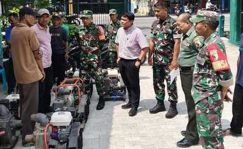 Tim Itjen Kementan melakukan kunjungan kerja di Makoramil 0815/06 Kemlagi, Kabupaten Mojokerto, Selasa (16/9). Kegiatan ini bertujuan untuk mengecek kesiapan serta fungsi Pompa Brigade Alsintan yang digunakan para Kelompok Tani (Poktan) di wilayah Kecamatan Kemlagi.
