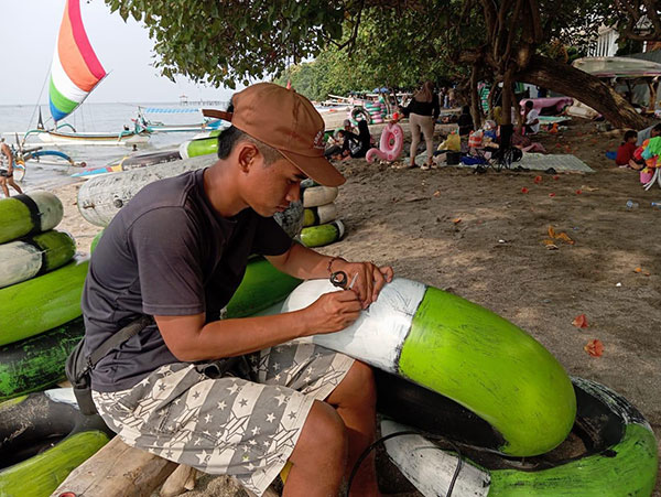 Pagi itu Mashuda bersama sederet pemuda dan dewasa penyedia sewa pelampung menyiapkan puluhan ukuran ban. Dari ukuran terkecil untuk kalangan anak balita, hingga ukuran remaja, pemuda dan bahkan ukuran pelampung besar untuk kalangan orang dewasa disiapkan oleh Maulana di pinggir pantai Pasir Putih Situbondo.