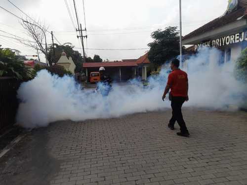 Upaya menekan penyebaran penyakit menular yang di sebabkan oleh nyamuk, dan menciptakan lingkungan yang sehat. Polres menggelar aksi fogging disinfektan, dan pengasapan anti-Demam Berdarah Dengue (DBD). Secara serentak di sejumlah titik wilayah, sebagai langka awal pencegahan.