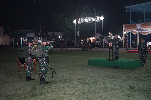 Komandan Kodim (Dandim) 0814 Jombang, Letkol Kav Devid Eko Junanto memimpin upacara serah terima Peleton Beranting Yudha Wastu Pramuka Jaya Kodam V Brawijaya Tahun 2024 dari peleton inti Batalyon Infanteri 514 Sabaddha Yudha kepada peleton inti Batalyon Infantri 500/Sikatan, bertempat di Lapangan Miagan, Kecamatan Mojoagung, Kabupaten Jombang, Rabu malam (18/12).