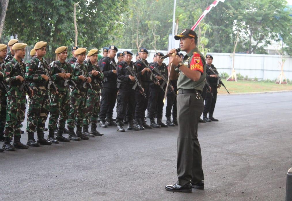 Dandim 0830/Surabaya Utara, Kolonel Inf Dharmawan Setyo Nugroho memimpin kesiapan pasukan pengamanan (PAM) VVIP kunjungan kerja Presiden RI, Joko Widodo, Jumat (6/9). Apel kesiapan pasukan ini dilakukan dibhalaman gedung Rumah Sakit UPT Vertikal Jl Indrapura, Surabaya