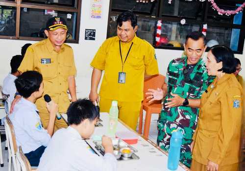 Danramil 0830-10 Sukolilo, Mayor Arm Iman Yulianto menghadiri peluncuran Program Makan Bergizi Gratis (MBG) yang diinisiasi Pemerintah dan Yayasan Catering Dapoer Toejoe, Senin (15/9) di SMPN 45 Surabaya.