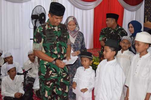 Acara diawali dengan pemberian santunan kepada anak yatim piatu, tausiyah singkat menjelang waktu berbuka, sholat magrib berjamaah kemudian dilanjutkan dengan doa bersama dan buka puasa bersama seluruh prajurit serta Persit Kartika Chandra Kirana. Suasana penuh keakraban dan kekeluargaan tampak mewarnai kegiatan tersebut.