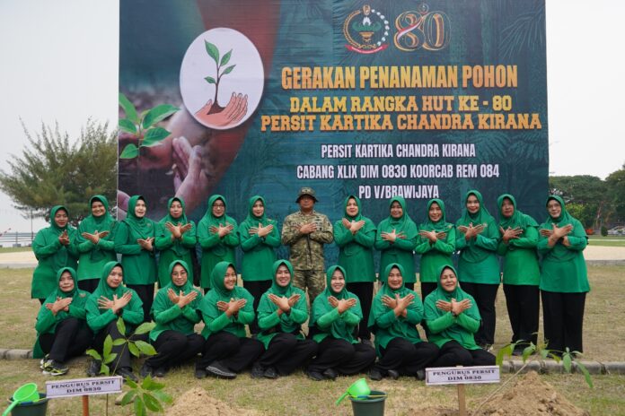 Dalam rangka memperingati HUT Persit Kartika Chandra Kirana ke-80, Danrem 084/Bhaskara Jaya Brigjen TNI Kohir didampingi Ketua Persit Ny. Nilam Kohir menggelar kegiatan penanaman pohon di Pantai Kenjeran, Senin (27/4/2026). Kegiatan ini diikuti jajaran TNI, termasuk Danramil dan Kapolsek setempat, sebagai wujud kepedulian terhadap lingkungan.
