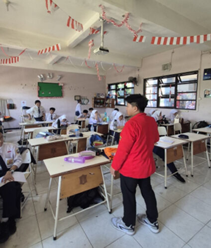 Selain fokus pada administrasi perpustakaan, mahasiswa juga membantu proses pembelajaran di kelas ketika terdapat guru yang berhalangan hadir. Dalam situasi tersebut, mahasiswa berperan mendampingi siswa, menjaga kondusivitas kelas, serta membantu menyampaikan materi atau aktivitas pembelajaran sesuai arahan sekolah. Peran ini menuntut kemampuan komunikasi yang baik, empatik, dan adaptif terhadap kondisi siswa.