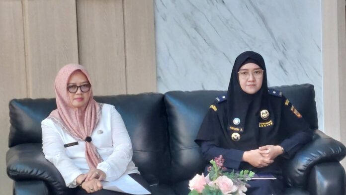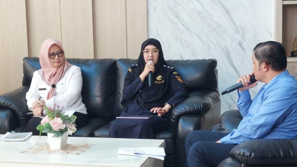 Pejabat Fungsional Ahli Pertama Kantor KPPBC Tipe Madya Malang Agnita Adityawardanidan Sekretaris Disperindag) Kab MalangAstri Lutfiunnisa saat sebagai menjadi nara sumber di podcast.