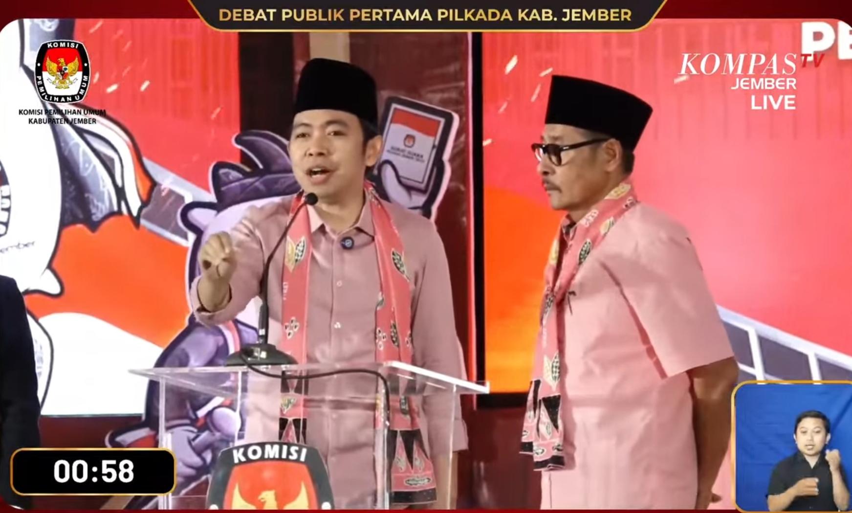 Pasangan Calon Bupati dan Wakil Bupati nomor urut 2 di Pilkada Jember, Gus Fawait – Djoko Susanto dalam keterangannya di Debat Publik Pertama Calon Bupati dan Wakil Bupati Jember, Sabtu (26/10).