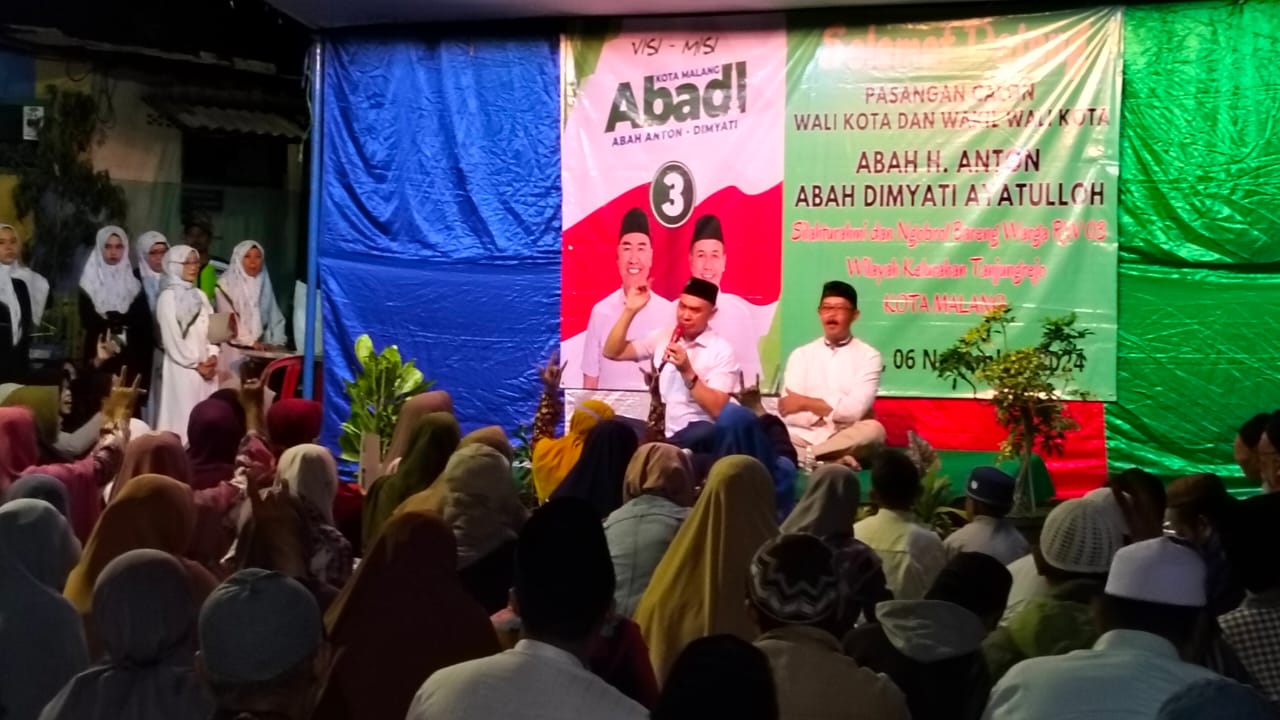 “Maka saya ajak panjenengan semua memilih Abadi, Abah Anton dan Dimyati agar bisa ikut mendapatkan dan memberi manfaat pada orang lain. Kalau panjenengan milih Abah Anton, panjenengan juga dapat pahala karena gaji saya untuk sedekah, artinya panjenengan juga ikut sedekah, memberi manfaat pada orang lain,” tutur Abah Anton. (mut.hel).