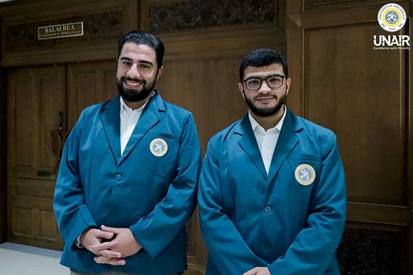 Membawa misi kemanusiaan, Ahmed Eliaan Syakir Abuajwa dan Ibrahim M. M. Abusalem memilih menempuh pendidikan kedokteran di Fakultas Kedokteran (FK) Universitas Airlangga (UNAIR).