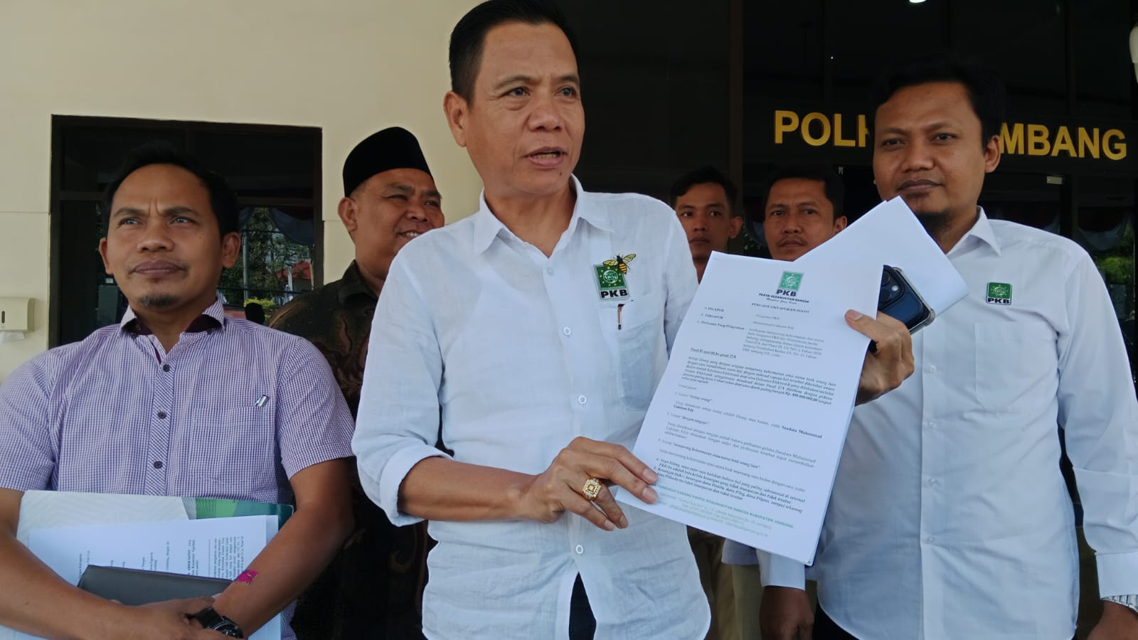Pengurus PKB Jombang saat mendatangi Polres Jombang untuk melaporkan mantan Sekjen DPP PKB, Muhammad Lukman Edy pada, Rabu (7/8). Foto: arif yulianto/bhirawa.