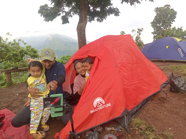 “Assalamu’alaikum Uti, maaf ya Uti hari ini tidak bisa kerumah Uti. Soalnya anak-anak lagi saya ajak tidur di gunung,” kata Andi Setyawan saat menghubungi ibunya usai sampai puncak Mt. Lorokan Pacet, Mojokerto melalui video call.