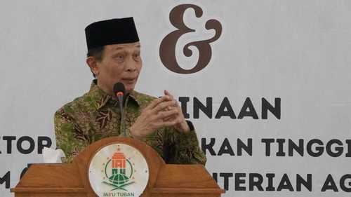 Hal tersebut disampaikan Direktur Pendidikan Tinggi, Direktorat Jenderal (Dirjen) Pendidikan Tinggi Keagamaan Islam Kementerian Agama Republik Indonesia Prof.Dr.Phil.Sahiron, M.A saat memberikan sambutan halal bihalal dan Pembinaan yang digelar Institut Agama Islam Nahdlatul Ulama (IAINU) Tuban, Jumat (18/4).