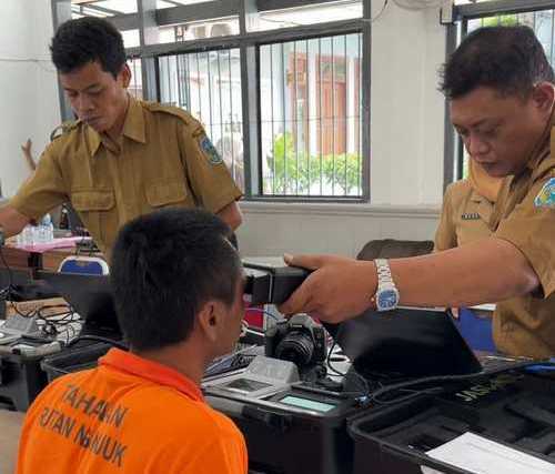 Tingkatkan pemenuhan hak identitas bagi Warga Binaan Pemasyarakatan (WBP), Rumah Tahanan Negara Kelas IIB Nganjuk menjalin kerja sama dengan Dinas Kependudukan dan Pencatatan Sipil (Disdukcapil) Kabupaten Nganjuk untuk melaksanakan perekaman biometrik, pemadanan Nomor Induk Kependudukan (NIK), serta pencetakan Kartu Tanda Penduduk (KTP).