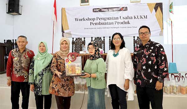 Dinas Koperasi, Usaha Kecil dan Menengah Provinsi Jawa Timur (Diskop UKM Jatim) menggelar workshop penguatan usaha KUKM pembuatan produk. Workshop pada Kamis (25/9) ini memfokuskan pada pembuatan produk UMKM Desa Wisata Pandansili Ngampungan, Kabupaten Jombang.