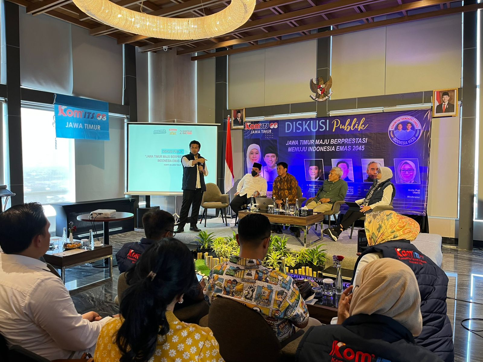 Komunitas Teknokrat Sinergi Indonesia Maju (KOMITS) 08 Jawa Timur menggelar diskusi publik bertajuk ‘Jawa Timur Maju Berprestasi Menuju Indonesia Emas 2045’ di Hotel Samator Novotel Surabaya, Sabtu (9/11).