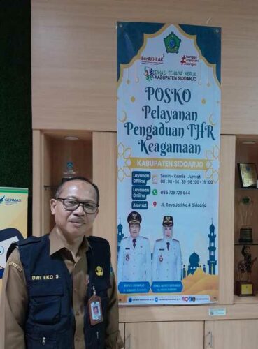 Dinas Tenaga Kerja Kabupaten Sidoarjo sudah membuka Posko pelayanan pengaduan THR keagamaan 2026, di Kantor Disnaker Kabupaten Sidoarjo jalan raya Jati nomor 4 Sidoarjo.
