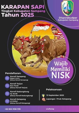 Dinas Pemuda Olahraga Kebudayaan dan Pariwisata (Disporabudpar) Sampang bakal menggelar lomba karapan sapi tingkat kabupaten pada Sabtu (13/9) di Lapangan Priok, Ketapang, Sampang.