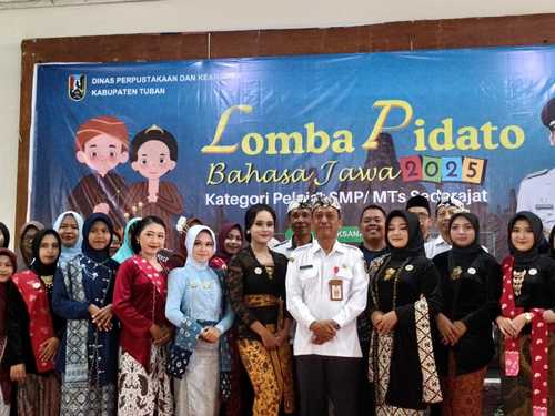Guna menumbuhkan semangat literasi sekaligus melestarikan bahasa dan budaya Jawa di kalangan pelajar, Dinas Perpustakaan dan Kearsipan (Dispersip) Kabupaten Tuban menggelar Lomba Pidato Bahasa Jawa tingkat kabupaten tahun 2025.