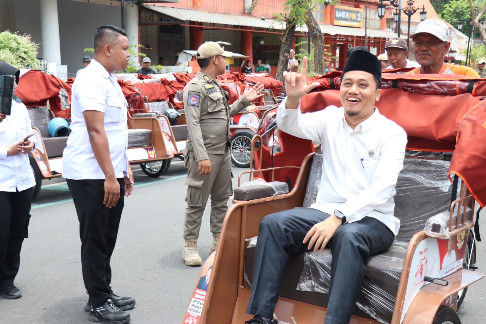 Program komitmen kepemimpinan Presiden Prabowo Subianto, wujudkan “Wong Cilik Gemuyu”, atau rakyat kecil bisa hidup lebih sejahtera dan tersenyum. Sebanyak 200 unit becak listrik di apresiasi DPRD, sebagai wujud nyata perhatikan masyarakat usia lanjut yang tetap bertahan untuk mendapatkan riski dengan ringan.
