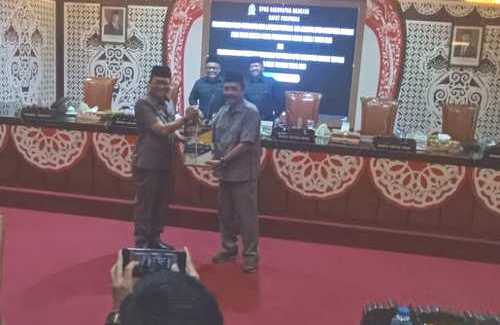 Kemudian secara simbolis Tatit Heru Tjahyono selaku Ketua DPRD menyerahkan Laporan pokir-pokir Pimpinan dan Anggota DPRD kepada pihak eksekutif yakni Nur Solekan, Sekretaris Daerah Kabupaten Nganjuk.