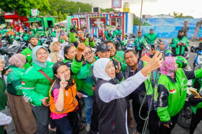 “Ini bagian dari kebersamaan kita. Kami ini berinteraksi sudah cukup lama. Saya ini bersapa dengan para pengemudi ojol di banyak tempat dan hari kita berbagi BBM gratis. Jadi tentunya kita ingin hadir dan memberikan dukungan langsung kepada mereka,” ujar Khofifah penuh semangat.