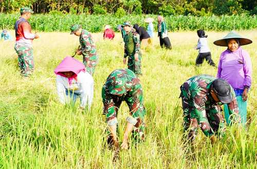 Sebagai wujud kemanunggalan TNI dengan rakyat, serta dalam rangka mendukung program pemerintah menjaga ketahanan pangan, Satuan Tugas (Satgas) TNI Manunggal Membangun Desa atau TMMD ke- 125 Kodim 0813 Bojonegoro turut membantu proses pemanenan padi jenis N70 diatas lahan seluas 2 hektar di Desa Soko Kecamatan Temayang Kabupaten Bojonegoro, Minggu (27/7) kemarin.