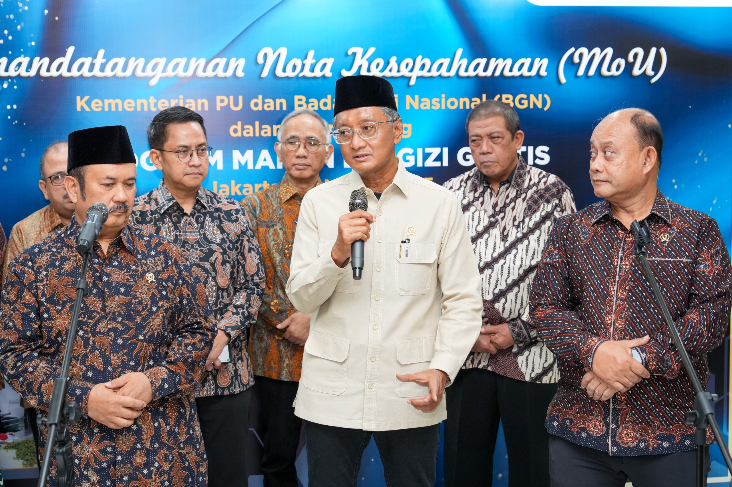 “Kesepakatan dan perjanjian ini juga merupakan komitmen penuh Kementerian PU untuk turut menciptakan ekosistem pendukung pelaksanaan Program Makan Bergizi Gratis di berbagai daerah,” kata Menteri Dody.