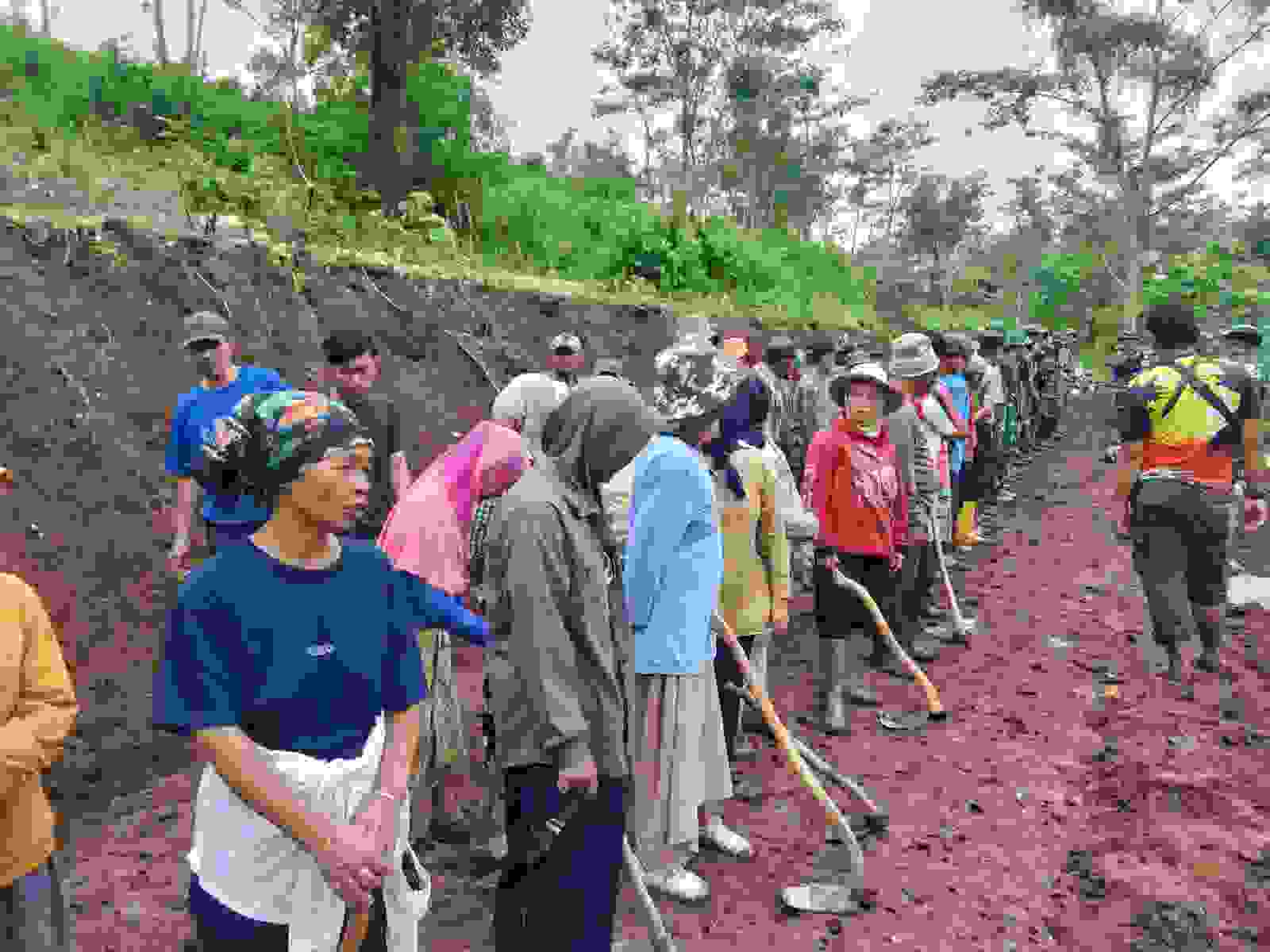 Yang menarik, peran ibu-ibu tampak begitu menonjol. Dengan penuh semangat, mereka ikut bekerja di bawah terik matahari, menunjukkan bahwa pembangunan desa bukan hanya tanggung jawab kaum pria, melainkan kerja bersama seluruh elemen masyarakat.