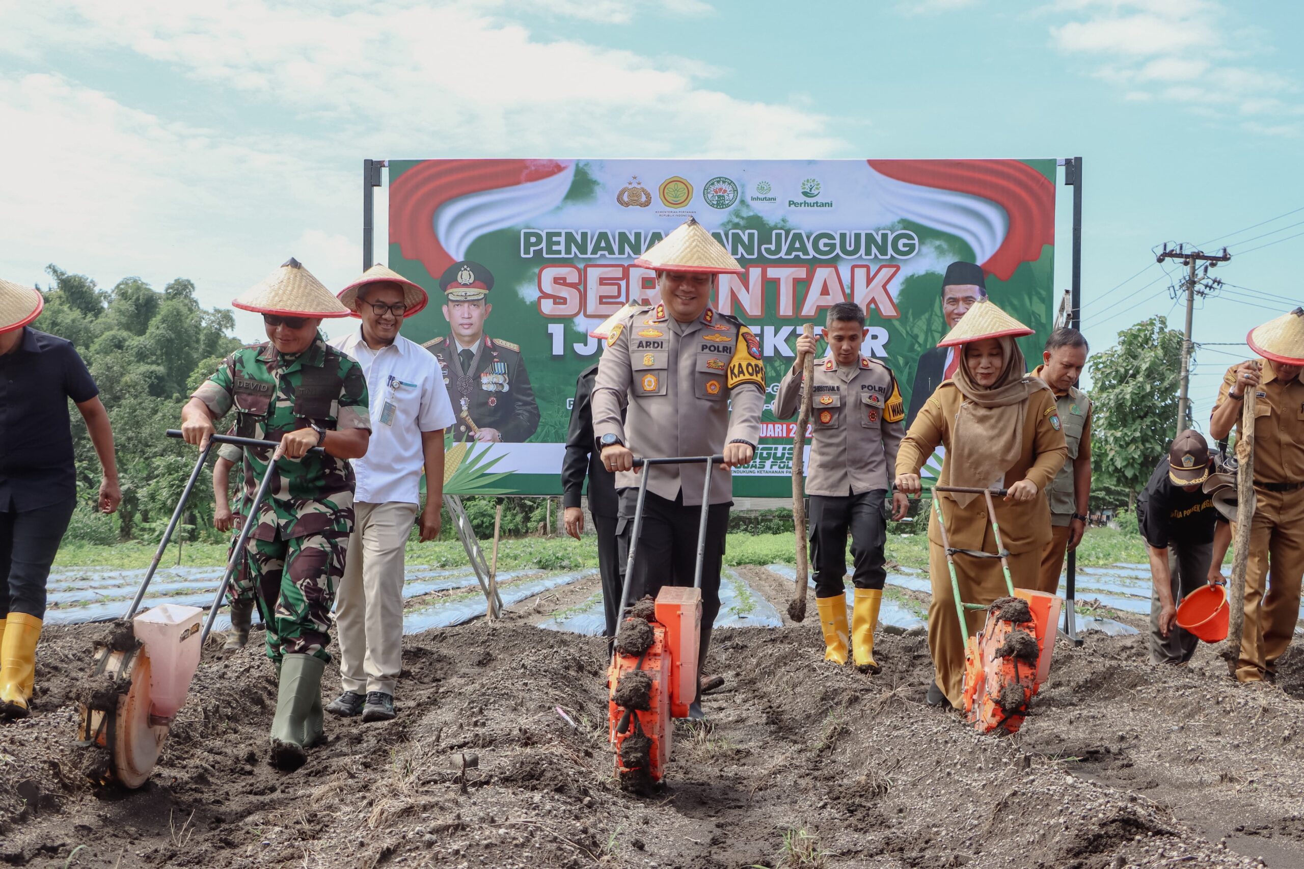 Kegiatan penanaman jagung serentak ini merupakan kolaborasi antara Polri dengan dinas terkait serta petani, dalam rangka mendukung program pemerintah untuk mencapai swasembada pangan tahun 2025.