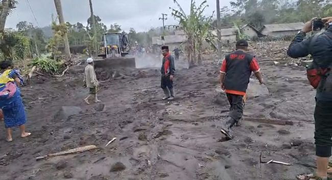 Kondisi di wilayah Desa Ranupani, Kec Sendoro, Kab Lumajang pasca erupsi Gunung Semeru dan luncuran awan panas
