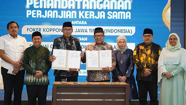 Kepala Dinas Koperasi dan UKM Provinsi Jawa Timur, Endy Alim Abdi Nusa, menghadiri sekaligus menyaksikan penandatanganan Perjanjian Kerjasama Pelaksanaan Digitalisasi Ekosistem Halal antara Forum Kerjasama Koperasi Pondok Pesantren (Foker Koppontren) Jawa Timur dengan Serunai Commerce Sdn. Bhd. Malaysia.