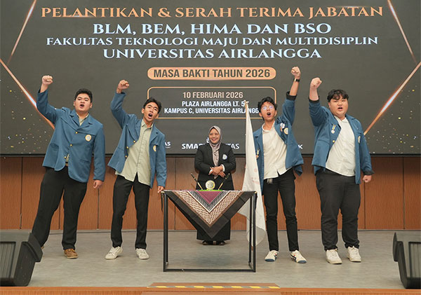Fakultas Teknologi Maju dan Multidisiplin (FTMM) Universitas Airlangga (Unair) resmi melantik jajaran pengurus Organisasi Mahasiswa (Ormawa) masa bakti 2026, di Plaza Airlangga Lantai 5, Surabaya.