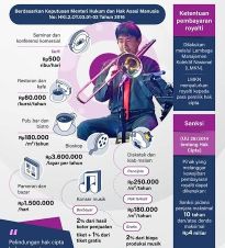 Pembayaran royalty merupakan amanat UU (Undang-Undang) Nomor 28 Tahun 2014 Tentang Hak Cipta. Pada pasal 9 mengatur tentang hak ekonomi pencipta atau pemegang hak cipta. Hak ekonomi, meliputi berbagai bentuk penggunaan ciptaan. Pemerintah tidak memungut langsung royalti. Berdasar Peraturan Pemerintah Nomor 56 Tahun 2021 Tentang Pengelolaan Royalti Lagu dan/atau Musik, telah ditunjuk LMKN (Lembaga Manajemen Kolektif Nasional).