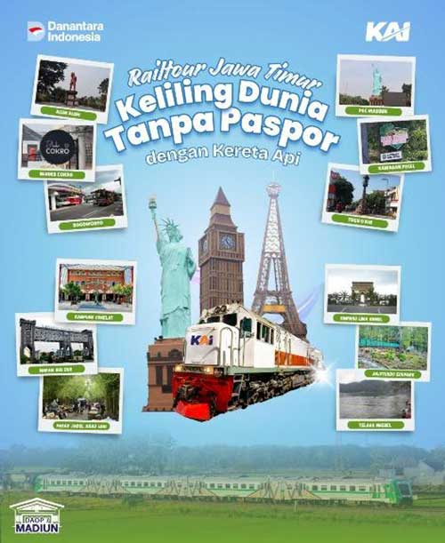 PT Kereta Api Indonesia (Persero) Daerah Operasi 7 Madiun telah secara resmi meluncurkan program pariwisata tematik bertajuk “Rail Tour Jawa Timur” pada tanggal 30 Oktober 2025. Program ini merupakan wujud nyata sinergi antara PT KAI dengan dua belas Pemerintah Daerah (Pemda) di wilayah Jawa Timur melalui Dinas Pariwisata (Dispar) serta Dinas Komunikasi dan Informatika (Kominfo) yang bertujuan untuk memanfaatkan jaringan perkeretaapian sebagai tulang punggung pengalaman wisata yang berkelanjutan dan inklusif.