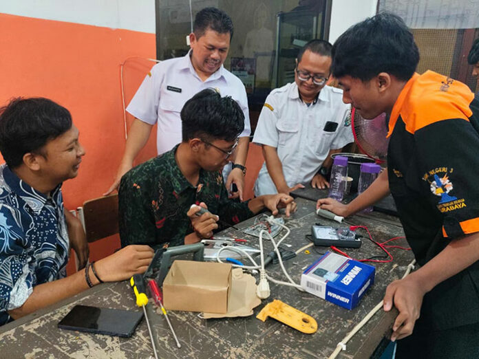 Peningkatan kompetensi menjadi fokus Dinas Pendidikan Jawa Timur untuk menghadirkan mutu pendidikan yang lebih baik. Komitmen ini menjadi dasar dalam pengembangan kemampuan guru, termasuk bagi jenjang Sekolah Luar Biasa (SLB). Sebagai wujud nyata, Dinas Pendidikan Jawa Timur melalui Bidang PKPLK berkolaborasi dengan SMKN 3 Surabaya menggelar pelatihan service peralatan rumah tangga listrik bagi 15 guru-guru SLB di Surabaya.