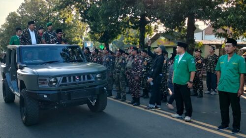 Bupati Situbondo Yusuf Rio Wahyu Prayogo, bersama Dandim 0823 Situbondo Letkol Inf Alexander A.B, Habib Husein bin Syekh Abu Bakar dan Pimpinan GP Ansor Pusat dan Jawa Timur saat melakukan pemeriksaan pasukan apel Akbar Ansor dan Banser, Jumat (27/6). Foto: sawawi/bhirawa