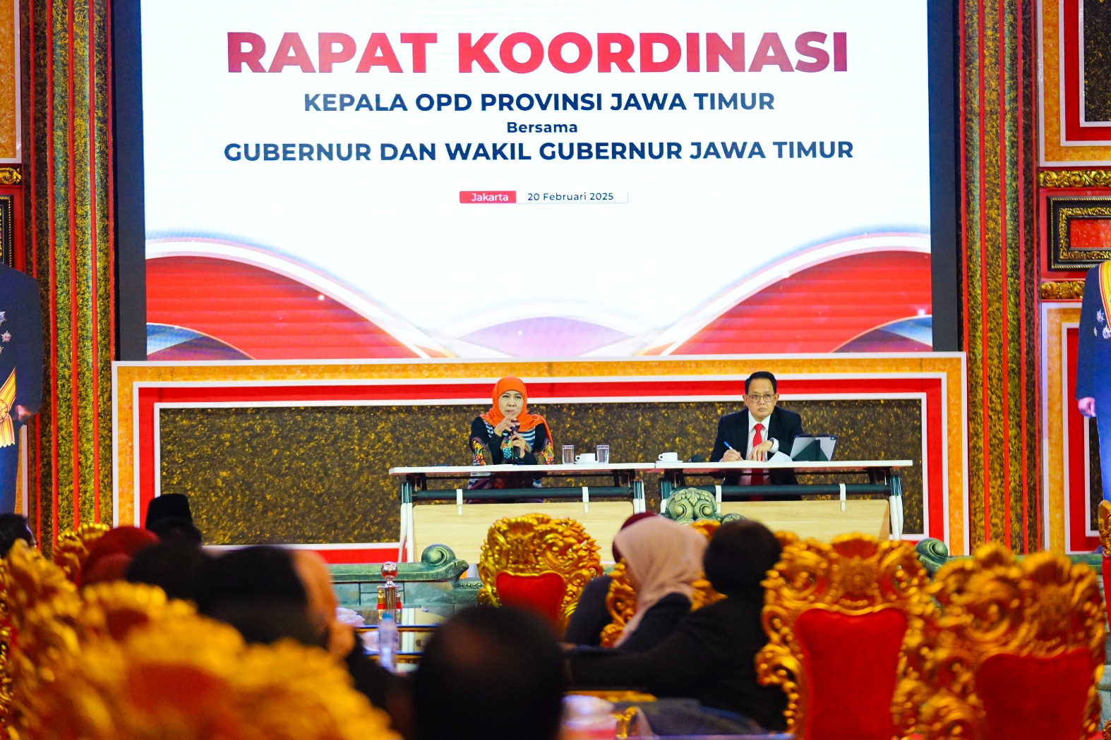 Usai dilantik, Gubernur Jatim Khofifah Indar Parawansa langsung tancap gas menggelar rapat koordinasi bersama jajaran kepala OPD Pemprov Jatim di Kraton Majapahit Jakarta, Kamis (20/2/2025). Dalam rakor tersebut, ia meminta seluruh jajarannya untuk tak sekedar menjalankan program melainkan berlari mewujudkan Jatim sebagai Gerbang Baru Nusantara.