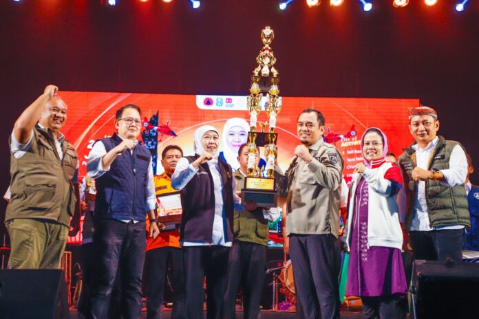 Gubernur Jawa Timur, Khofifah Indar Parawansa menutup kegiatan Gelar Peralatan Penanggulangan Bencana 2025 di Kebun Raya Purwodadi, Pasuruan pada Rabu (23/7) malam. Pada momen ini, Gubernur memotivasi dan menyemangati BPBD Jatim beserta jajaran dalam memberikan pengabdian layanan kebencanaan bagi masyarakat.