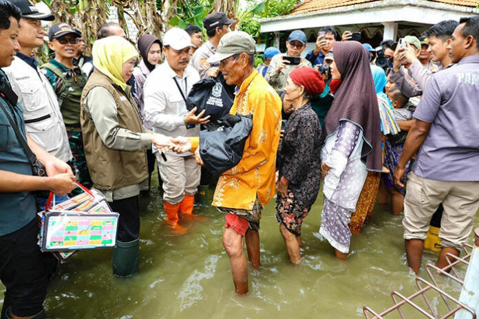 Bersama Bupati Lamongan, Yuhronur Efendi, Gubernur Khofifah memastikan penanganan banjir dilakukan secara cepat, tepat dan optimal.