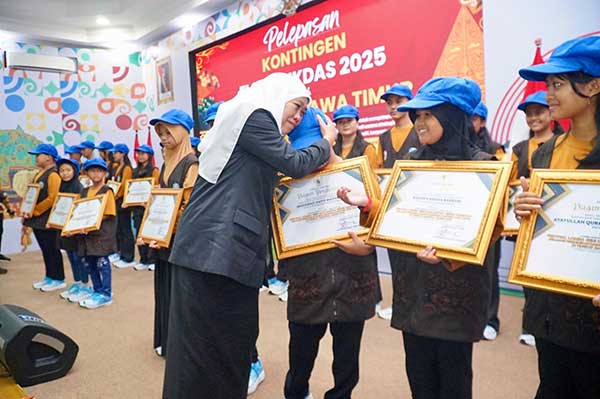 “Selamat dan sukses untuk anak-anakku semua, ingat perjalanan kalian telah mengantarkan kalian hingga pada tingkat nasional, itu adalah pencapaian luar biasa yang tidak mudah diraih, kalian ilah duta-duta terbaik Jawa Timur, bersemangat, berikan yang terbaik, dan bawa pulang juara umum untuk kebanggaan Jawa Timur,” tutur Khofifah.