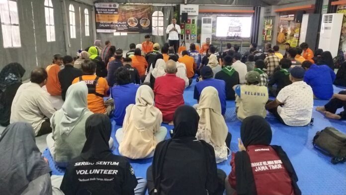 Kegiatan tersebut dikemas melalui “Arisan Ilmu Nol Rupiah” ke-65 yang digelar di Aula Taman Edukasi Bencana BPBD Jatim, Minggu (28/2), dan diikuti sekitar 100 peserta dari berbagai organisasi relawan.