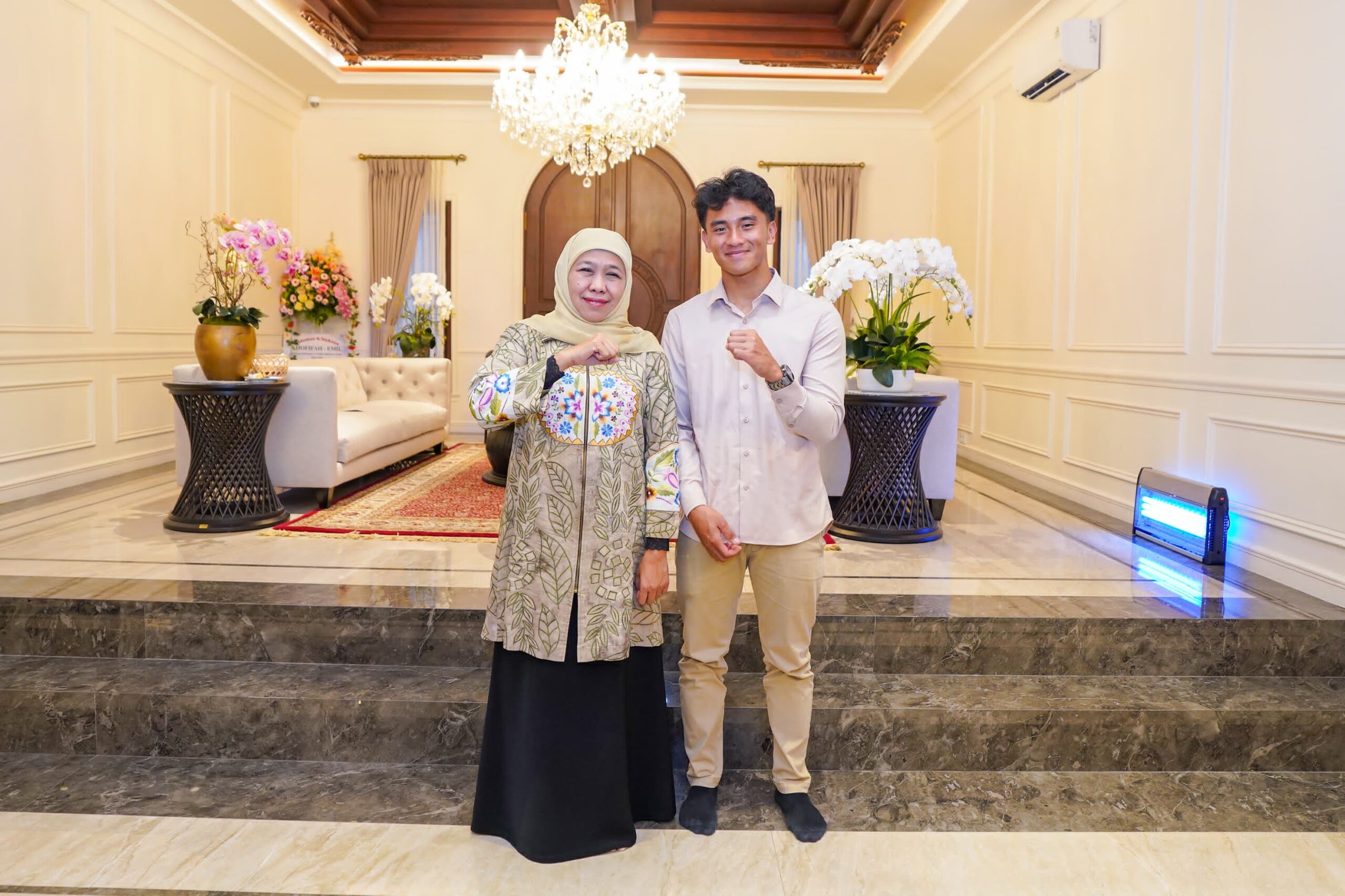 Pebalap Moto2 asal Magetan, Mario Suryo Aji, menyempatkan diri bersilaturahmi ke kediaman Calon Gubernur Jawa Timur terpilih, Khofifah Indar Parawansa, sebelum memulai musim balap Moto2 tahun 2025, Selasa (7/1/2025)