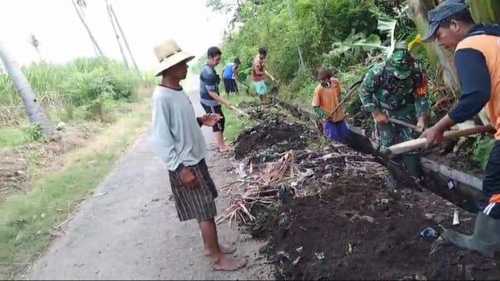Hadapi Musim Hujan, Babinsa Koramil 0823/07Asembagus dan Warga Bersihkan Jalan Desa